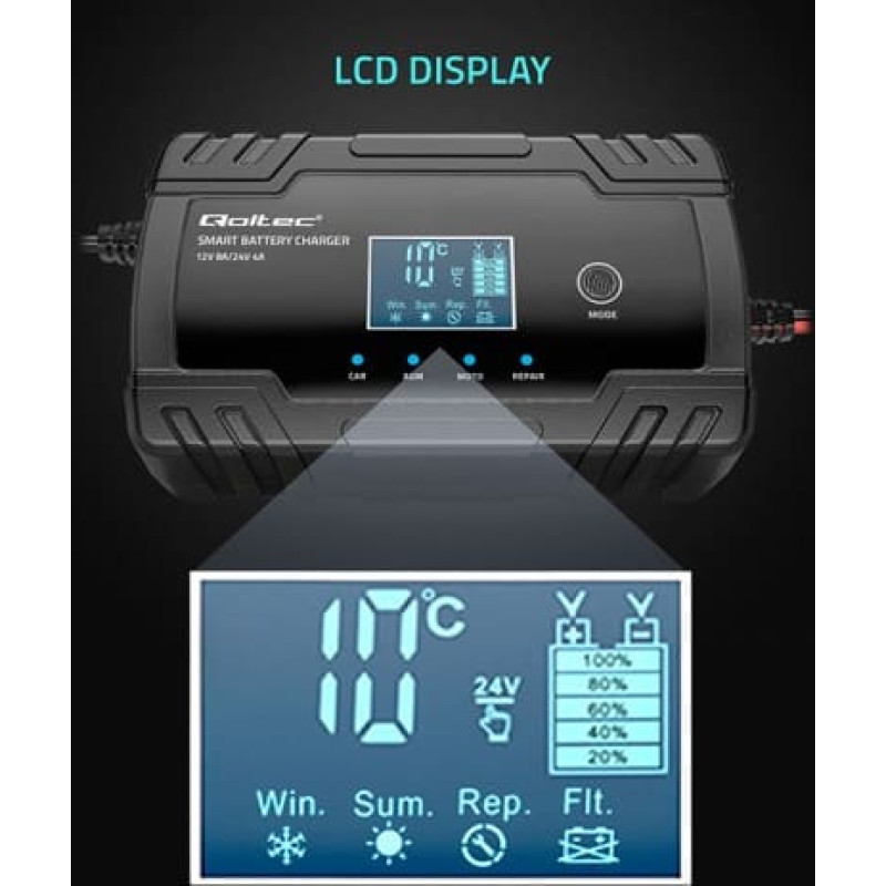 Qoltec Microprocessor charger 12V 8A 24V 4A LCD