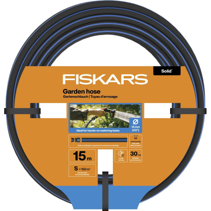 Fiskars Wąż ogrodowy 13 mm 1/2" 15 m Solid do podlewania trawnika trawy