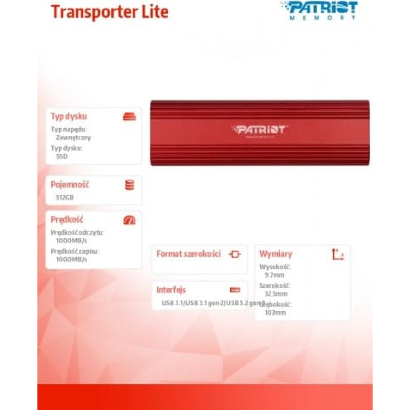 Patriot SSD drive 512GB Transporter Lite 1000/1000 MB/s Type-C