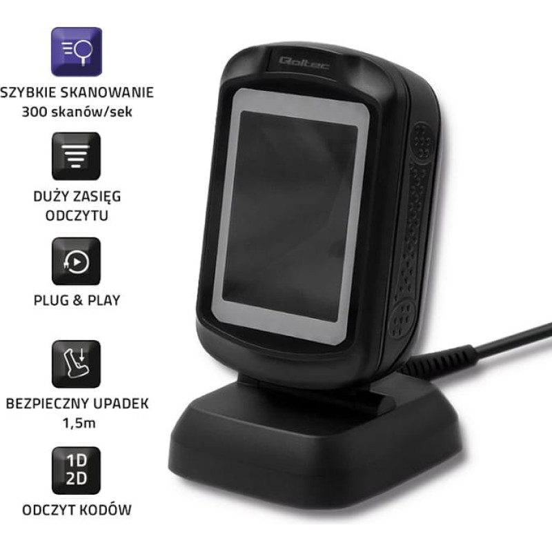 Qoltec Desktop barcode scanner 1D, 2D, USB