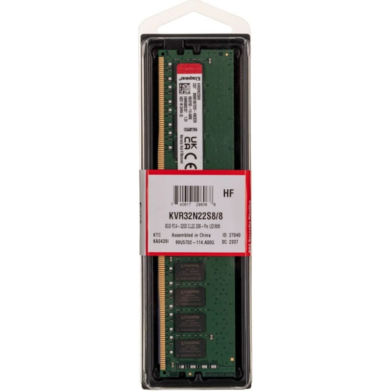 Kingston Technology ValueRAM KVR32N22S8/8 memory module 8 GB 1 x 8 GB DDR4 3200 MHz