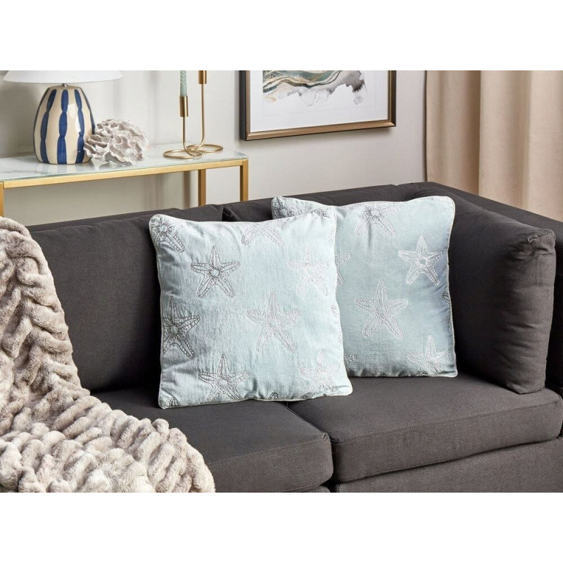 Beliani Zestaw 2 poduszek Welur Błękitny CERAMIUM Lumarko!